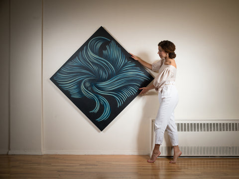 This piece attempted to create a loose and flowing composition without over-working the surface. This was also the first time I experimented with the positioning of the stretcher like a diamond, something I have carried on ever since.