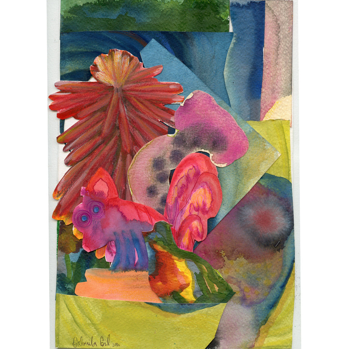 This one-of-a-kind collage was part of a series Gabriela Gil did starting in 2021 where she repurposed her color studies to create imaginary creatures inspired by nature.