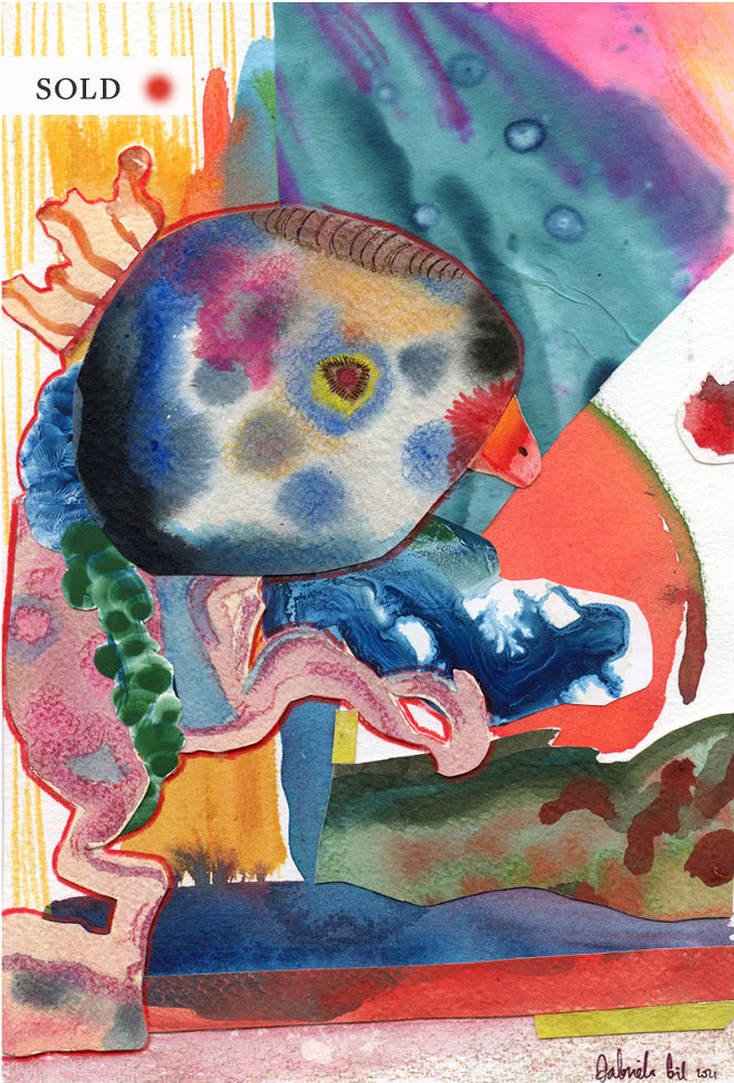This one-of-a-kind collage was part of a series Gabriela Gil did starting in 2021 where she repurposed her color studies to create imaginary creatures inspired by nature.