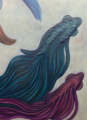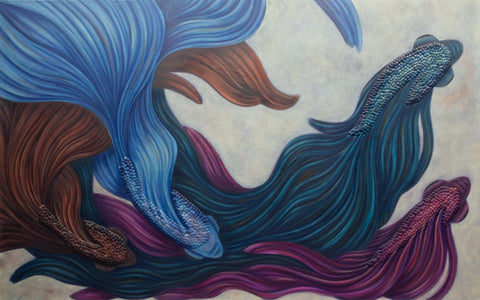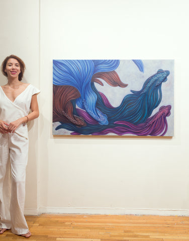 Each piece in the Siamese series had the objective of exploring new techniques and themes, pushing the boundaries of the artist's process. "Siamese 21" stands as a singular piece within the collection because it is the only one painted in oil, and because it reflects some of the growth and experimentation that came from studying at The Arts Students League of New York.