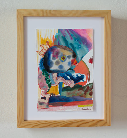 2021, 11" x 14", Framed collage of acrylic, oil, ink and colored pencil on cotton, yupo and rice paper. Framed in solid wood. Ready to hang.