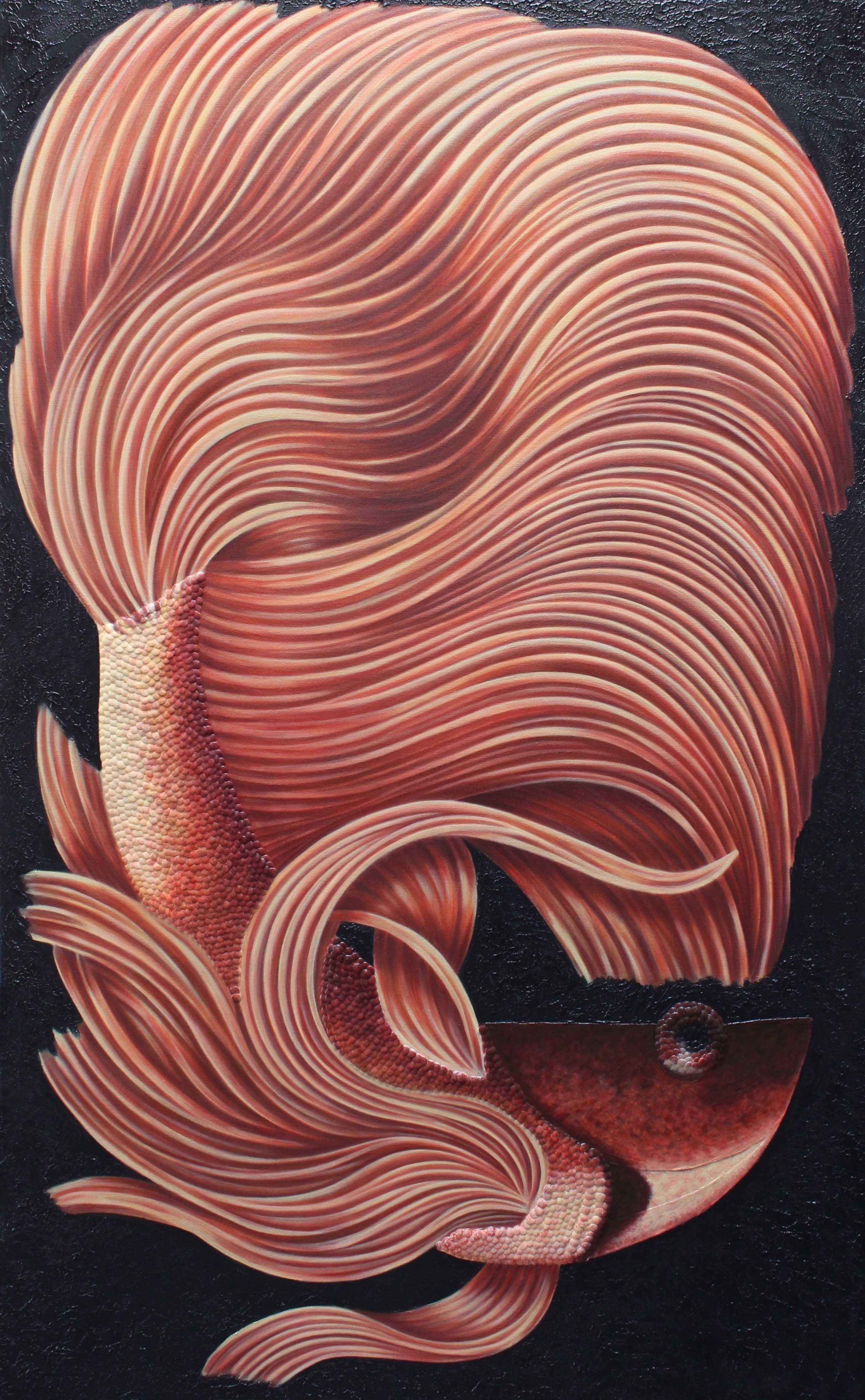 Gabriela Gil completed this piece between December 2017 and January 2018. While working on it, she took a break in between to do a road trip of 1,981 miles across the United States. It was an important and energizing trip during which she visited Joshua Tree, Antelope Canyon, and Horseshoe Bend; and, read "La Casa de los Espiritus" by Isabel Allende for the first time. These were impactful experiences that carried through to the finishing touches of the painting.