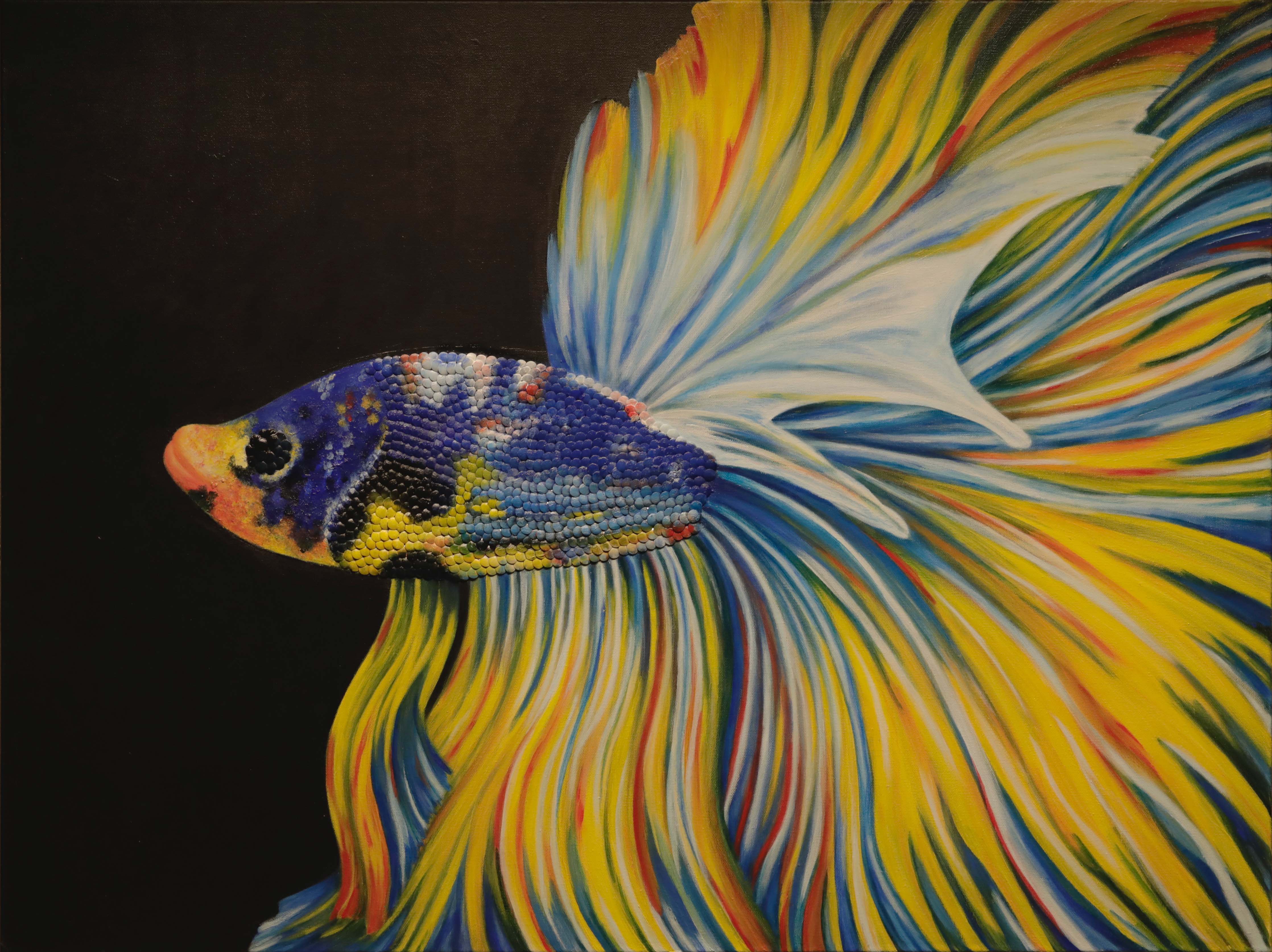 2016, 30” x 40” (76.2 x 101.6 cm), acrylic and metal patchwork on canvas