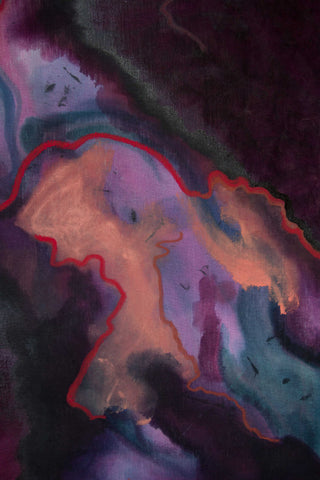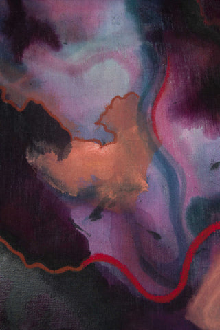 Acrylic, oil pastel, on dyed linen, mounted on a wooden panel, 2019
