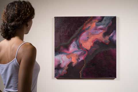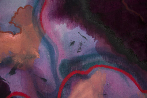This was the second piece Gabriela Gil worked on after relocating her studio from San Francisco to New York City. This was a highly experimental period in her practice where she began dying the fabric before working on it, and in general, explored the possibilities of material to spark visual and emotional effects.
