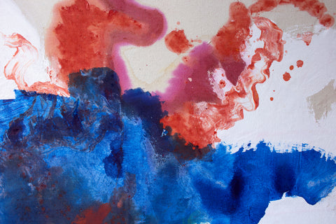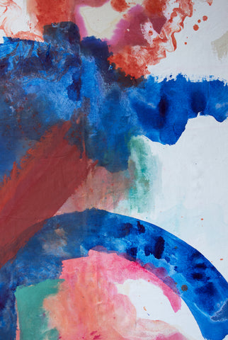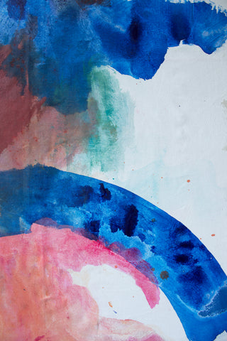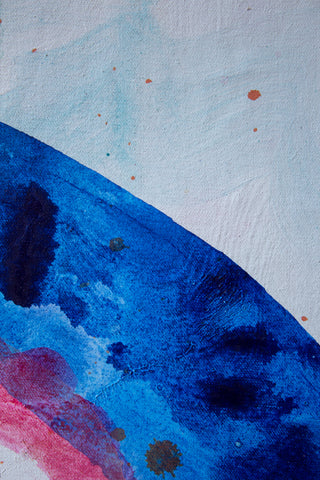 The multi-layered surface exposes areas of raw canvas, and hints of subtly-painted brushstrokes which Gabriela Gil refers to as "ghost marks." This was a painting she made in 2019 and informed some of the techniques she would later employ at larger scale such as mixing polished surfaces with exposed raw canvas.