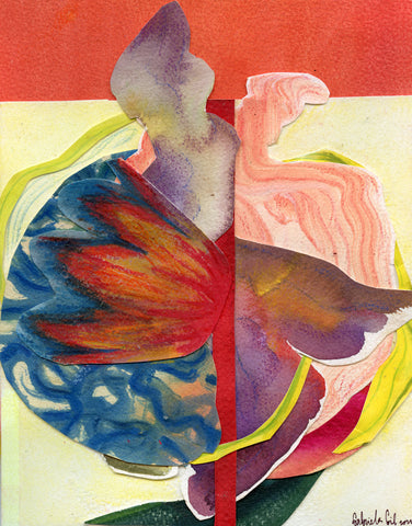 collage enmarcado en arce sólido y hecho con gouache, acrílico, tinta, lápiz de color y pastel sobre papel de algodón y papel de arroz. El marco mide 14 x 11 pulgadas (35.56 x 27.94 cm)